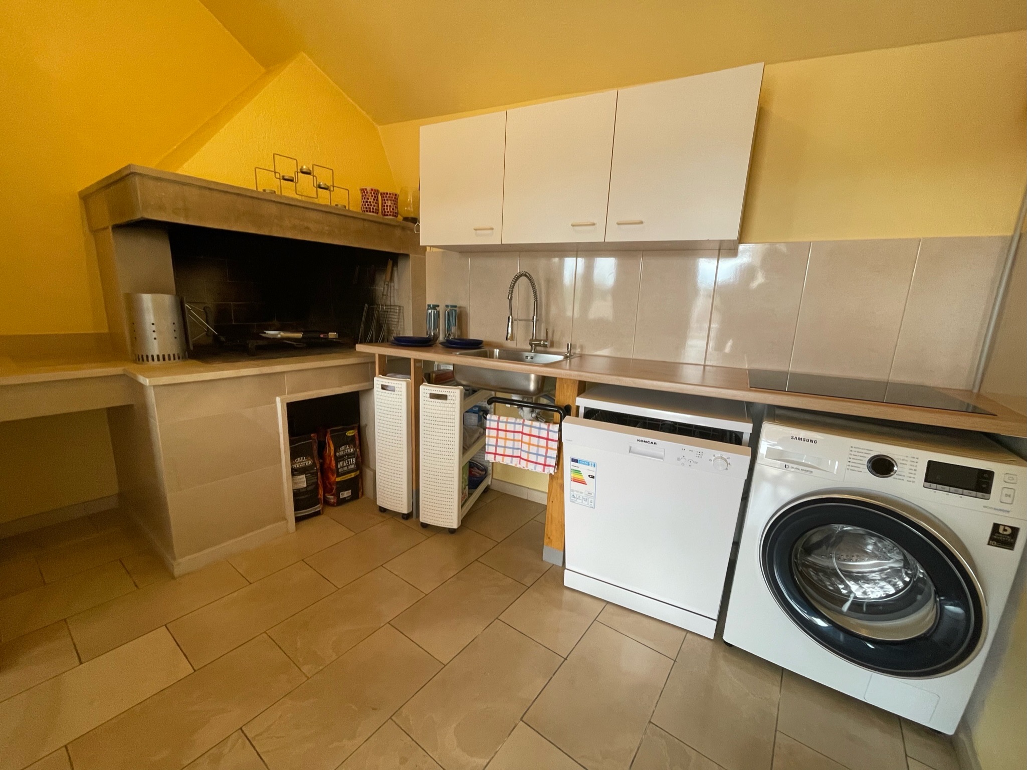 Der vorhandene Kühlschrank mit Gefrierfach erweitert die Konoba ideal zur Lagerung von kalten Getränken und Speisen in der Nähe des Pools. Wie in jeder voll ausgestatteten Küche ist auch die Spülmaschine und Waschmaschine vorhanden.